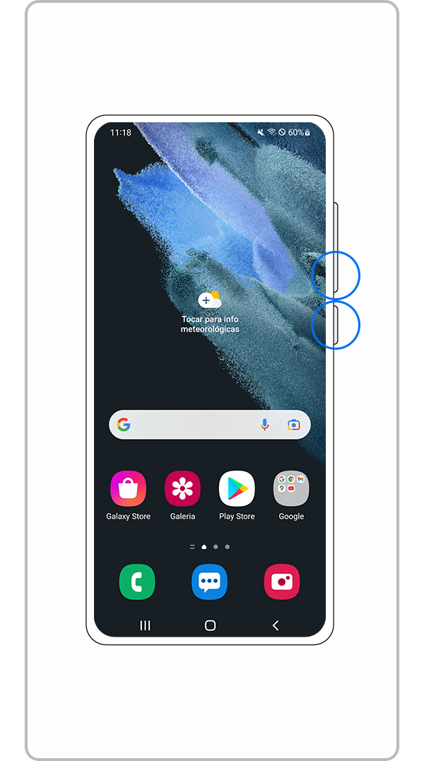 Passo 1. Prima e mantenha premida a Tecla de diminuição do volume e a Tecla lateral em simultâneo.