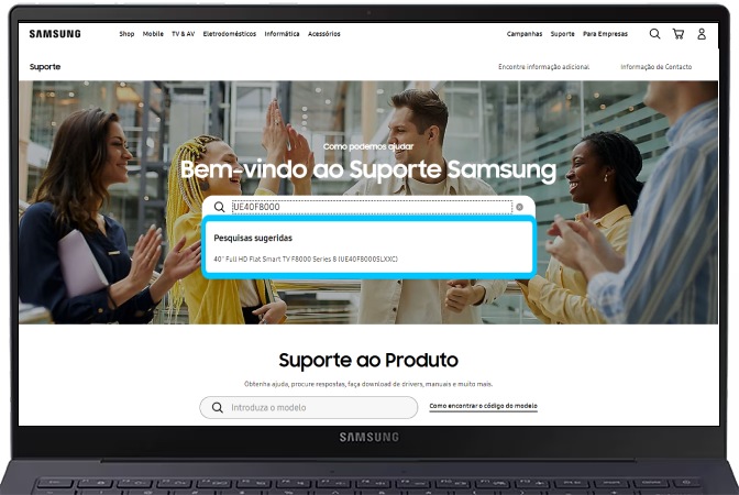Preencha o campo de pesquisa com o modelo da sua TV.