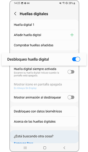 Para evitar el reconocimiento involuntario de huellas digitales, la función Huellas digitales siempre activas debe estar desactivada. Si la función está habilitada, el teléfono continuará intentando escanear la huella digital mientras lo sostengas. Esto puede causar vibraciones o desbloqueos no deseados. Si crees que esta función es inconveniente de usar, sigue los pasos a continuación para desactivarla.