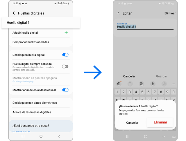 Paso 3. Selecciona una huella digital para eliminar y toca Eliminar.