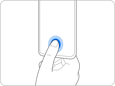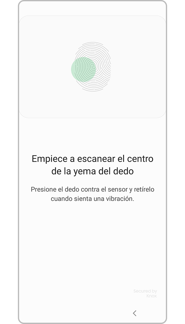 - Si doblas el dedo o usas la punta del dedo, es posible que el dispositivo no reconozca tus huellas digitales. Presiona la pantalla para que la punta de el dedo se extienda sobre toda la superficie del área de reconocimiento de huellas digitales.