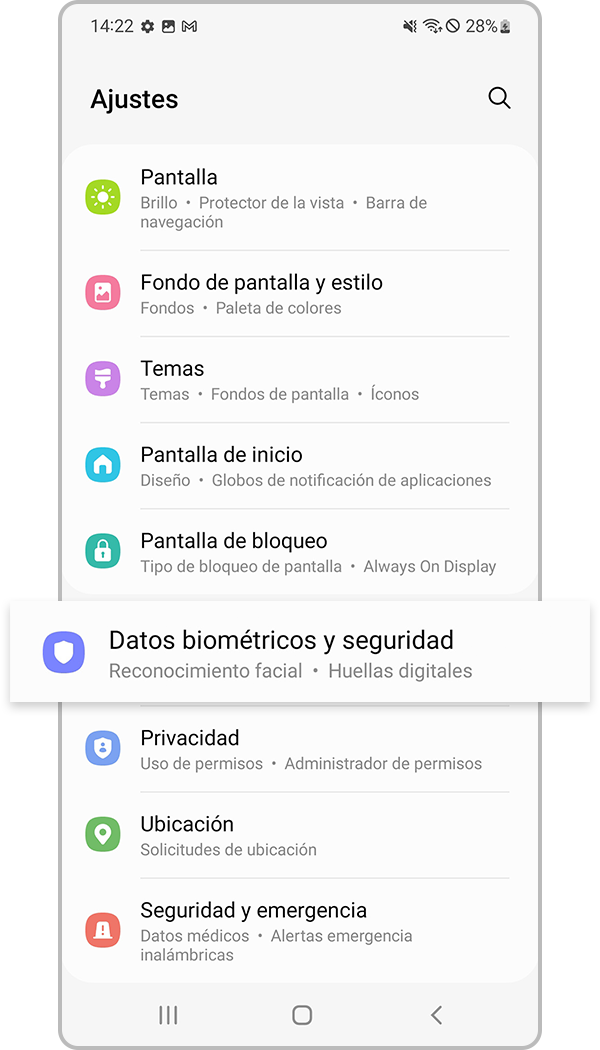 Paso 1. Inicia la aplicación Ajustes y toca Datos biométricos y seguridad.