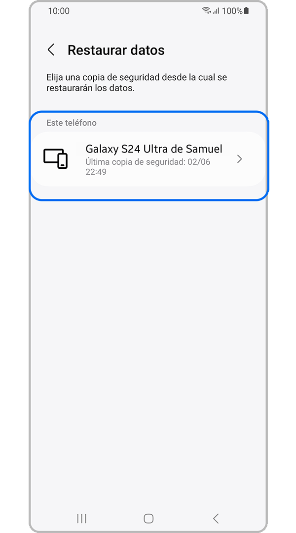 Nota: Si ya tenés una cuenta de Samsung y haz realizado una copia de seguridad de tus datos, podés iniciar sesión y luego restaurar los datos en el nuevo dispositivo.