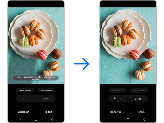Borra fácilmente las sombras o los reflejos que se detectan automáticamente con solo pulsar un botón.