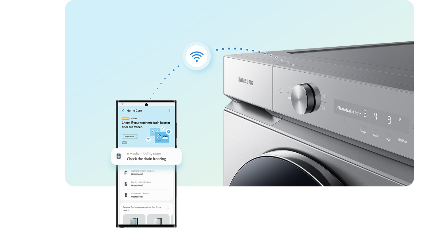 Primești alerte utile despre rufele tale. Dacă ești departe de casă, poți folosi SmartThings pentru a-ți păstra rufele curate, până când te întorci.