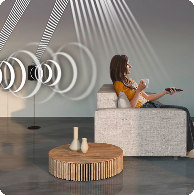 Pornește ambele dispozitive. Pe televizor, accesează Meniu > Sunet > Listă de difuzoare > Selectați difuzorul > Audio Bluetooth. Apoi, apasă butonul Source > Function > F de pe soundbar sau de pe telecomanda acestuia și ești gata să-ți transformi sufrageria în propriul cinematograf.