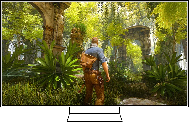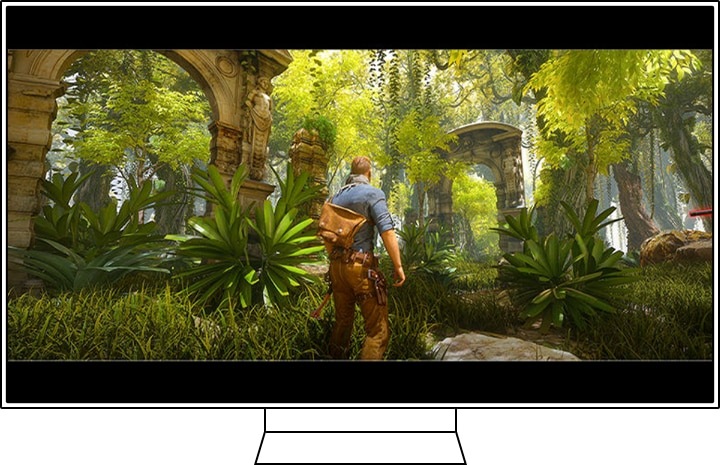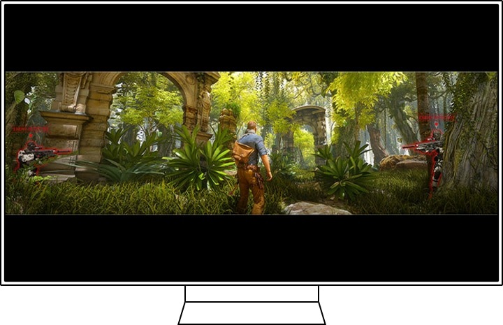 Ultrawide GameView™ prezintă un câmp vizual mai larg, care era invizibil într-un raport de aspect convențional 16:9. Ultrawide GameView oferă o vizualizare mai captivantă și mai informativă a jocului, astfel încât să se poată vedea periferiile unui câmp de luptă, unde inamicii s-ar putea afla la pândă.