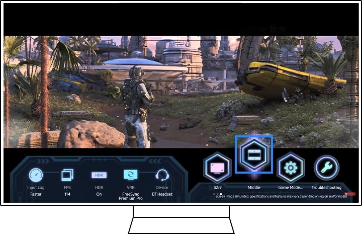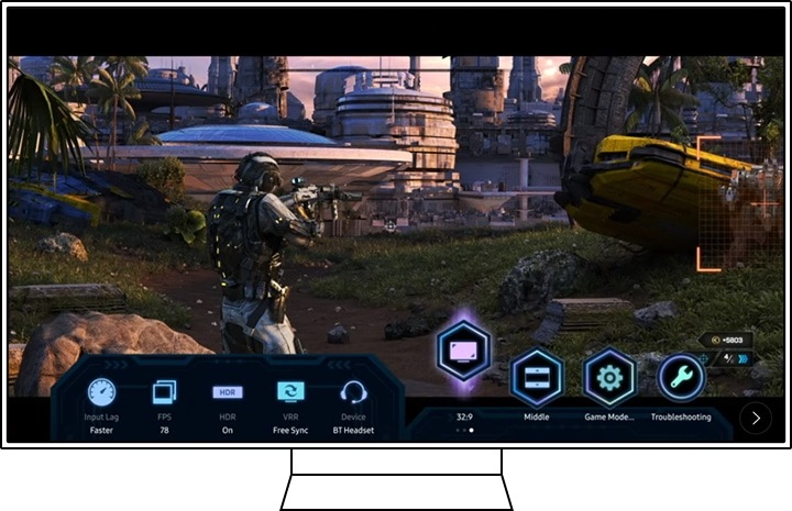 Noul televizor Samsung lansat în anul 2021 introduce Bara de jocuri, care afișează toate informațiile de care ai nevoie pentru a-ți monitoriza performanța în jocuri, inclusiv Latență de intrare, CPS (Cadre pe secundă), HDR (High Dynamic Range), VRR (Variable Refresh Rate) și Ieșire de sunet și oferă acces ușor pentru optimizarea caracteristicilor de jocuri. Jucătorii se pot bucura de diverse opțiuni pentru toate preferințele de joc.