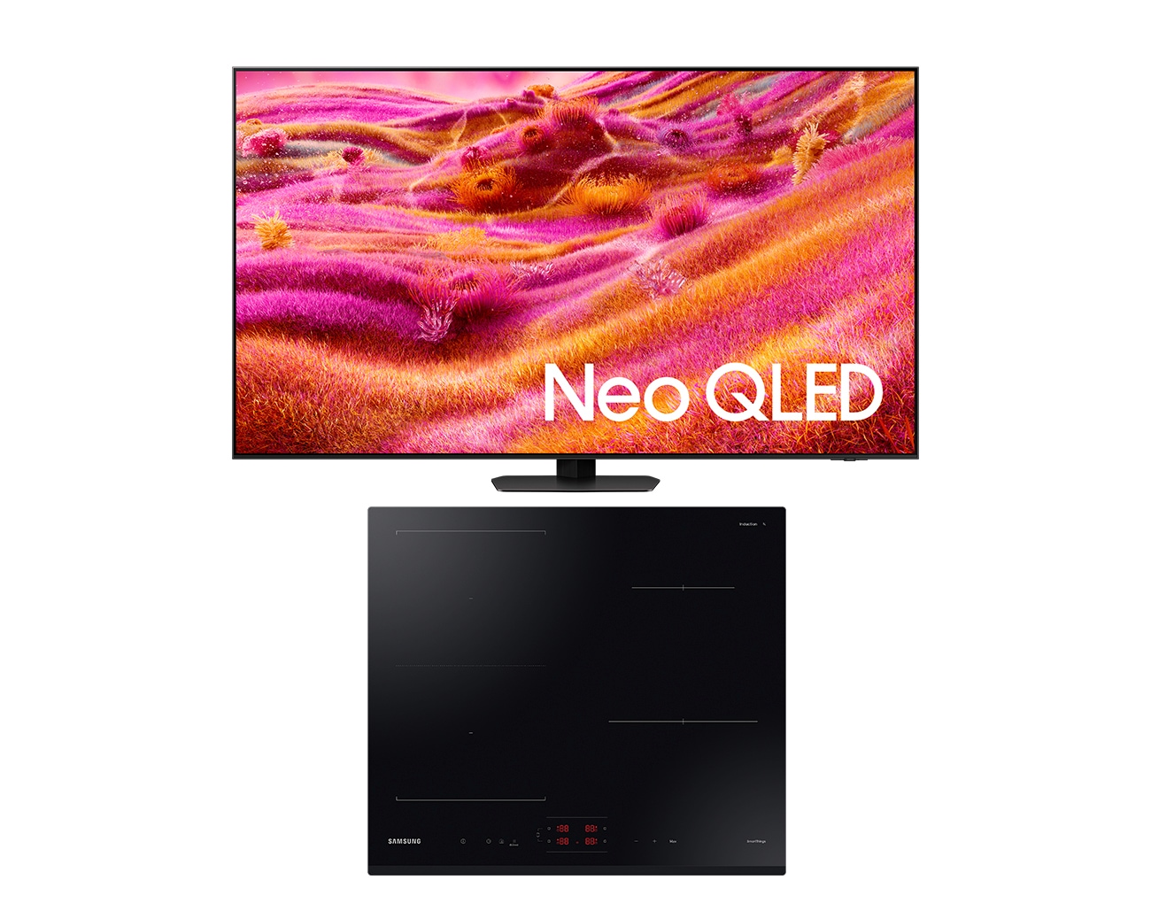 Pachet promoțional format din Neo QLED Ultra HD 4K Smart 55QN90F Vision AI HDR 138 cm 2025 + Plită cu inducție cu zonă flexibilă și conectivitate Wi-Fi 7.2kW la un preț special.