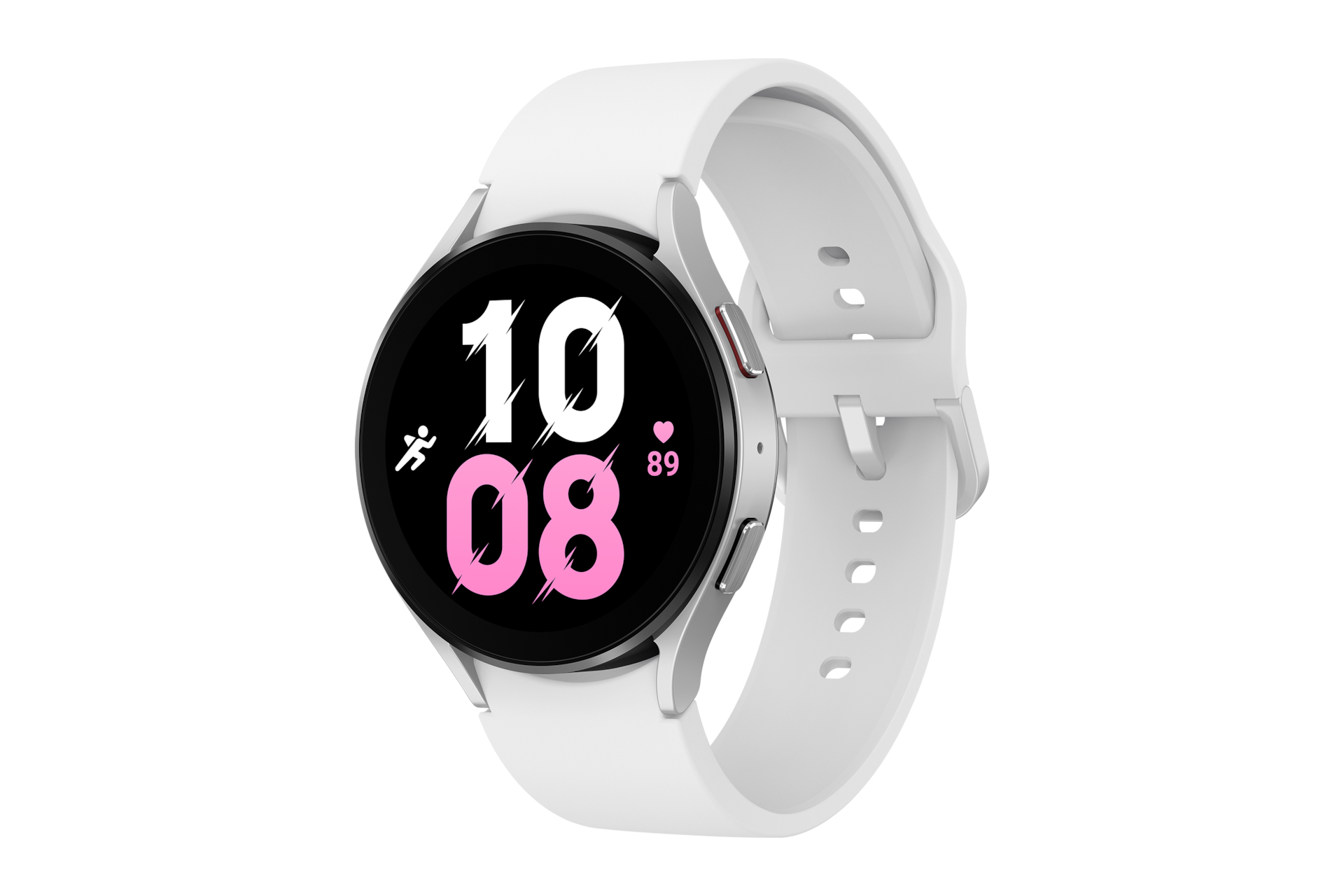 Četiri Galaxy Watch5 uređaja postavljena jedan preko drugog u četiri različite boje i različitih interaktivnih interfejsa (grafitni pokazuje sastav tela na licu sata, ružičasto-zlatni pokazuje vreme 10:08, srebrni pokazuje rezultat spavanja i vreme kao 8h 30m i safirno plavi pokazuje vreme kao peticu ispisanu u gradijentu od plave do bele). Svaki sat ima kaiš drugačije boje, od kompozitno sive do ikonske zlatne, lavande i nove plave.