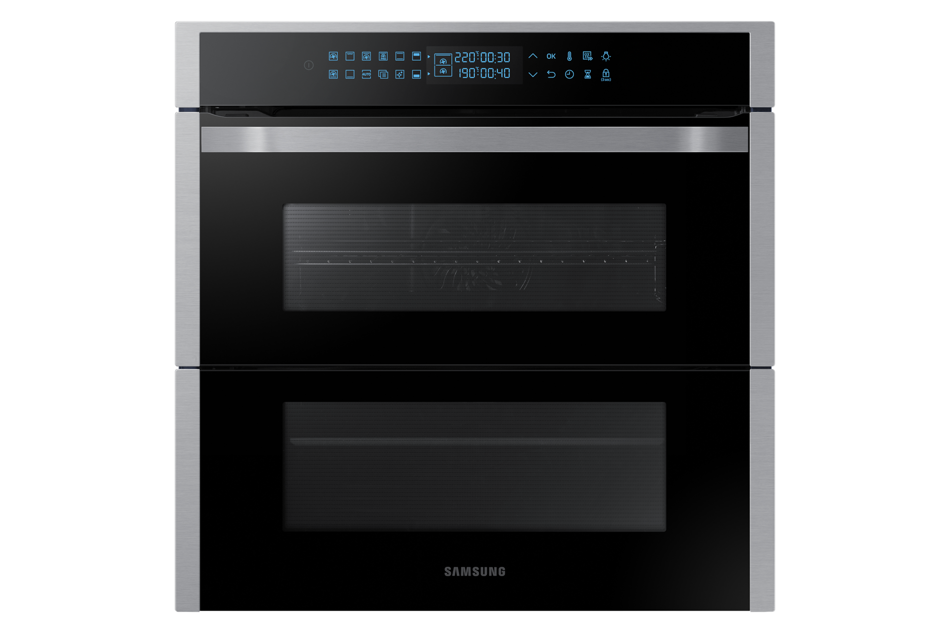Откройте верхнюю половину двери для доступа к блюду в верхней зоне, не охлаждая нижнюю зону. Либо открывайте дверь целиком, при использовании полного объема печи.