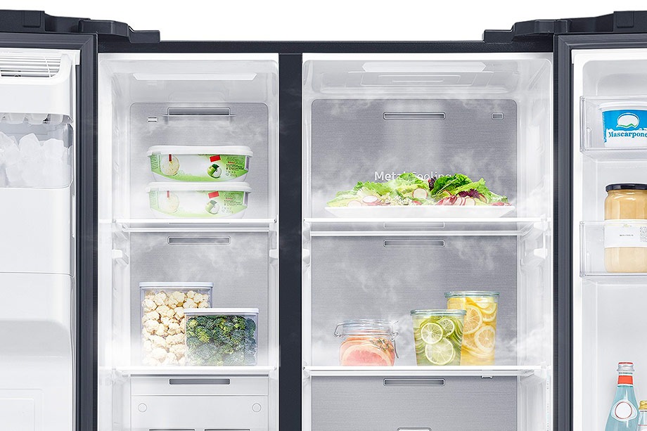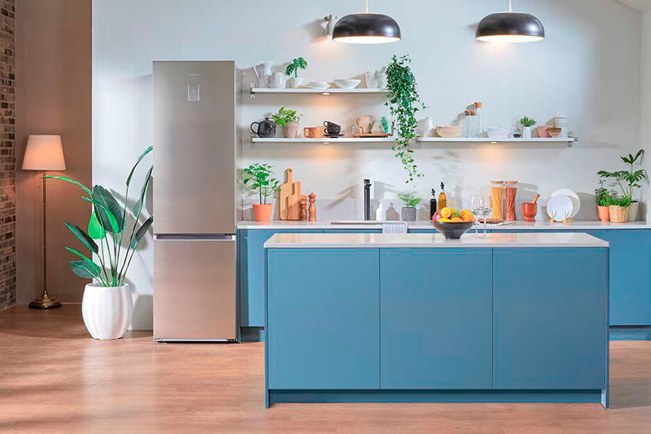 Морозильная камера находится над отделением для свежих продуктов — посмотрите подборку моделей от Samsung. Но это чемпионы по энергоэффективности. Все дело в том, что морозилки в таких моделях находится далеко от компрессора. И потребляют сильно меньше энергии.