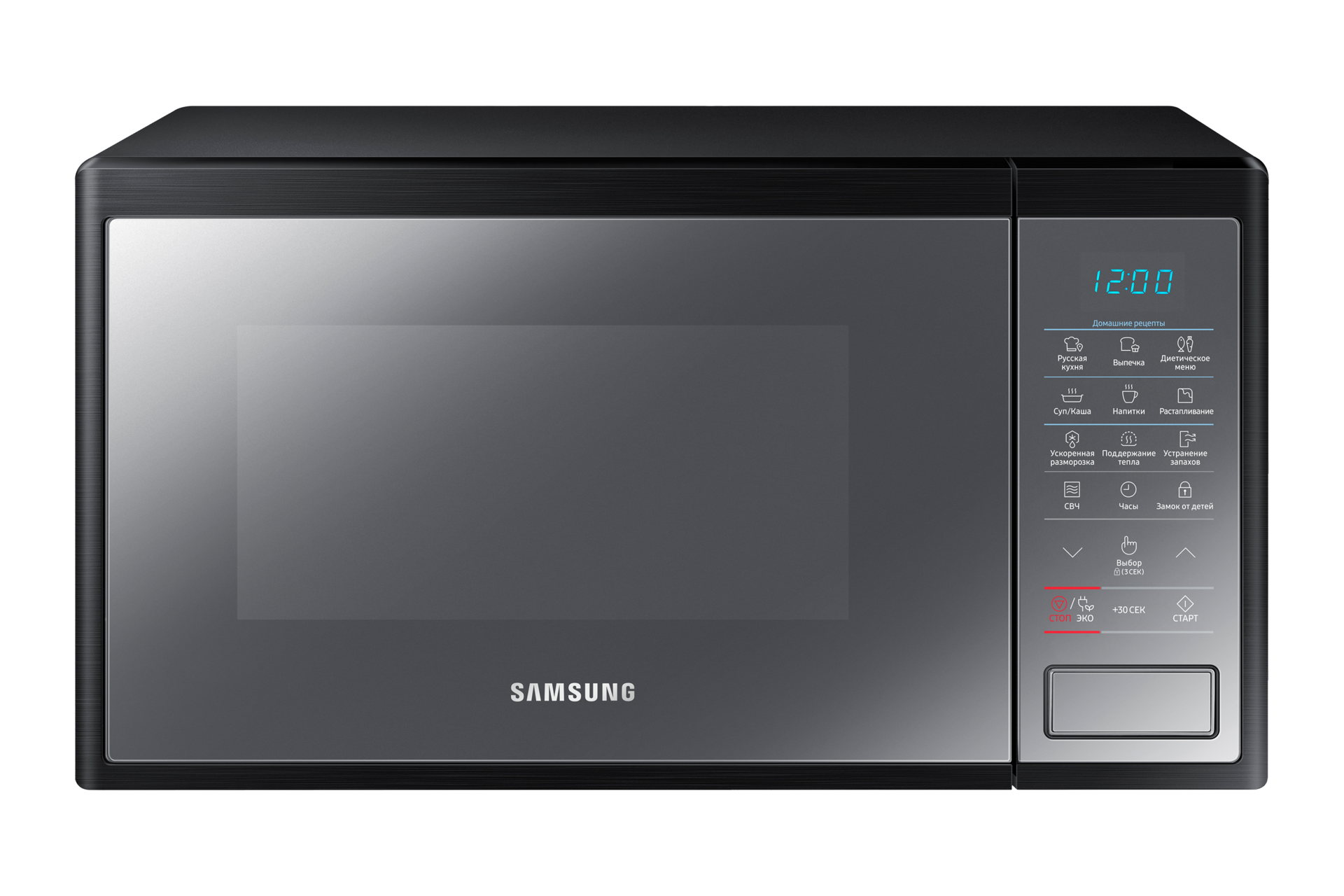 Микроволновая печь имеет отличный дизайн, который удачно впишется в вашу кухню. Корпус сделан из нержавеющей стали, а фасад имеет цельное зеркальной покрытие.