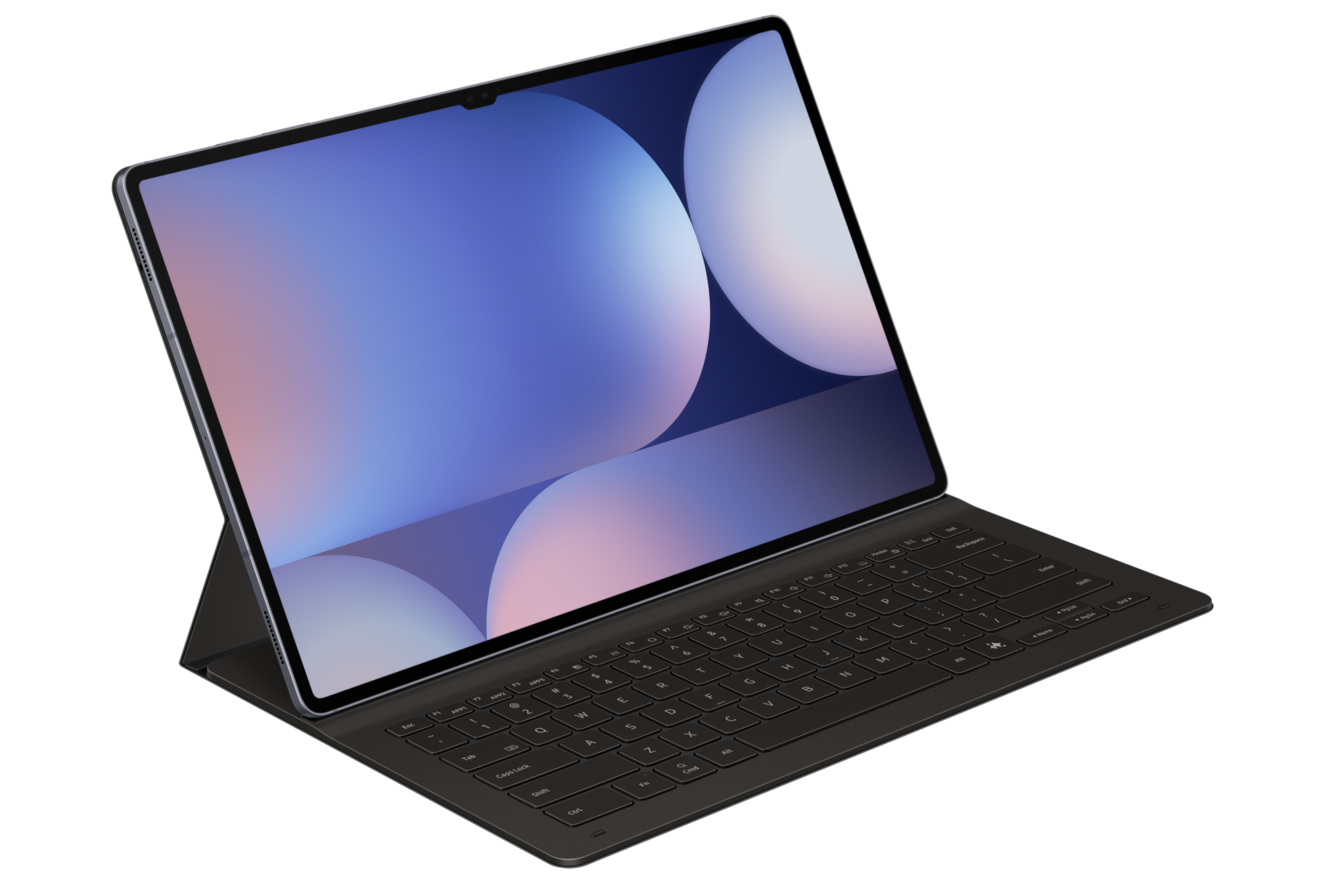 Тонкий чехол на магнитах со съёмной клавиатурой, подключение через POGO разъём (не требует зарядки и дополнительного сопряжения), многофункциональные и DeX клавиши, клавиша быстрого доступа к функциям искусственного интеллекта AI, фиксация подставки под комфортным для просмотра контента углом, встроенный отсек для электронного пера S Pen, возможность ввода текста на сопряженных с планшетом устройствах, автоматическое включение/выключение экрана, эргономичная форма клавиш, защита корпуса и экрана