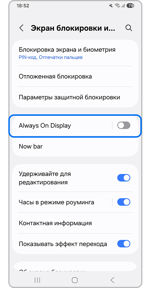 Нажмите на пункт Always On Display в настройках экрана блокировки, чтобы увидеть больше параметров.