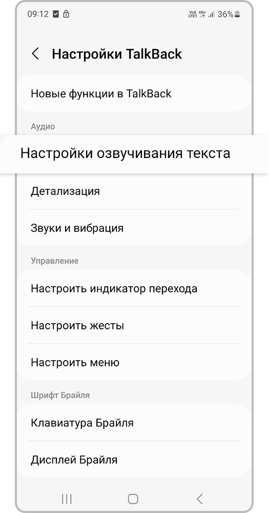 Проверьте наличие доступных обновлений в Galaxy Store и обновление ПО телефона. Если такие обновления доступны для Talkback и Samsung TTS (Синтезатор речи), обязательно их установите.