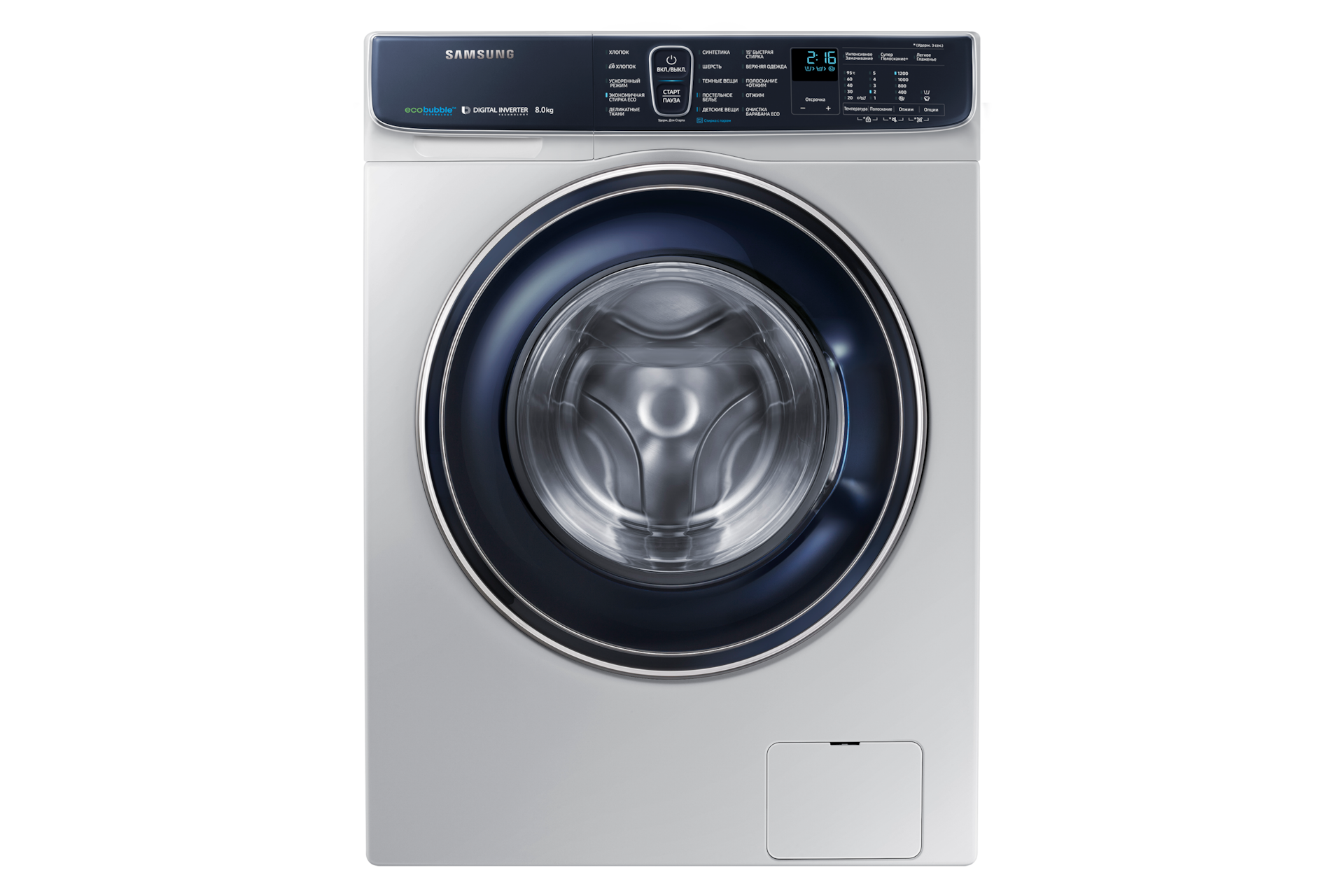 ¹ Соответствует процедуре испытаний по стандарту IEC 60456 Ed.5/4 кг загрузку / Интенсивная стирка Eco холодная вода (WF80F5E5U4W) и Хлопок 40° без технологии ecobubble™ (WF0702WKU). В отдельных случаях результаты могут быть другими.