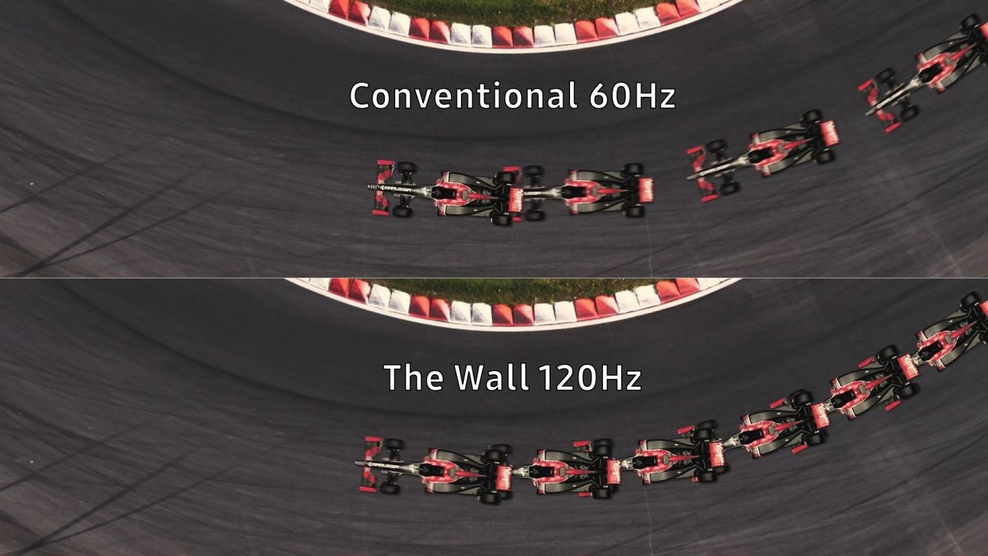 تحول شاشة The Wall الإشارات 60 هرتز القياسية إلى 120 هرتز بشكل تقليدي، ما يزيل اهتزاز الحركة في مشاهد الحركة السريعة لبث أكثر سلاسة وتجربة مشاهدة سلسة في كل مرة.