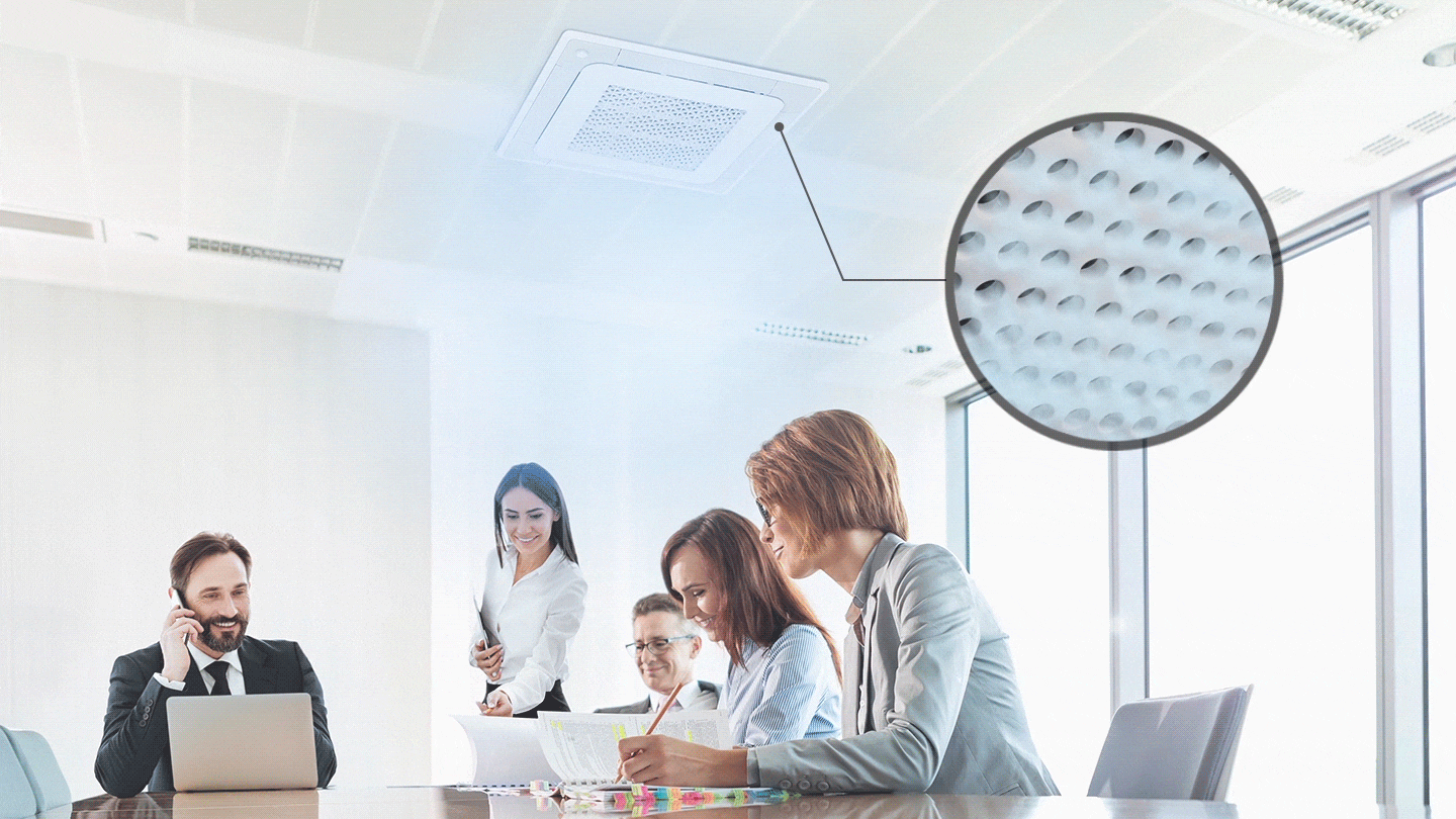 يمنحك مبرد الهواء بتكنولوجيا التبريد دون تيارات هوائية WindFree™Cooling مستوىً مريحًا من البرودة المنعشة، دون الشعور المزعج بتيارات الهواء الباردة. يتم توزيع الهواء البارد بلطف من خلال 15,672 فتحة هواء دقيقة، وبذلك لا تشعر بشدّة الحر أو البرد.