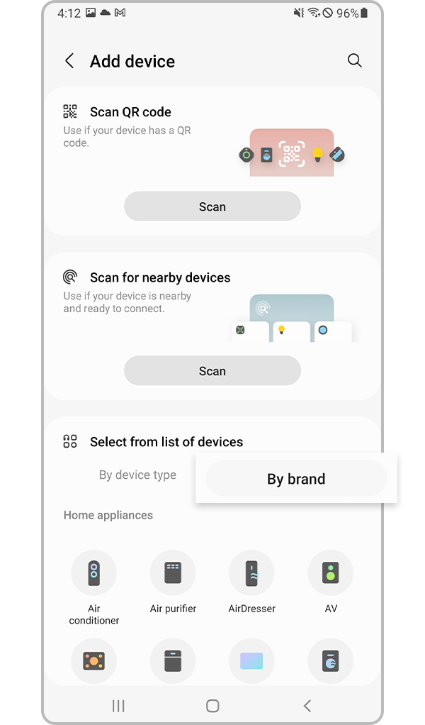Note: The SmartThings app is compatible with phones running Android 8.0 or higher as well as iOS 12.0 or higher.