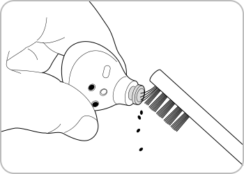 Note: Do not use anything sharp or use excessive force while removing earwax or debris. The microphone hole, speaker, and air duct may be damaged.