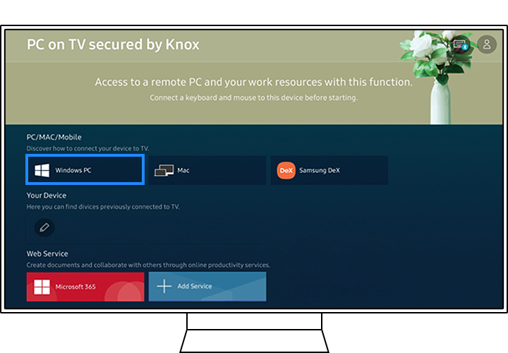 In addition to PC remote access and PC mirroring, you can access Microsoft 365 directly and work on documents on your TV. Check out the features available with the PC on TV function.