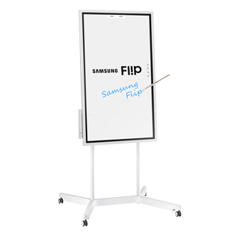 För företag med begränsade gemensamma utrymmen kan Samsung Flip förvandla praktiskt taget vilket utrymme som helst till ett fullt funktionellt mötesrum. Det bärbara stativet med hjul gör det enkelt att sätta upp möten överallt.