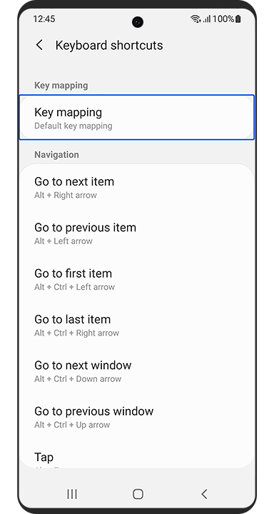 • Kortkommando för tangentbordDu kan styra TalkBack med kortkommandon när ett Bluetooth- eller USB-tangentbord är anslutet.
