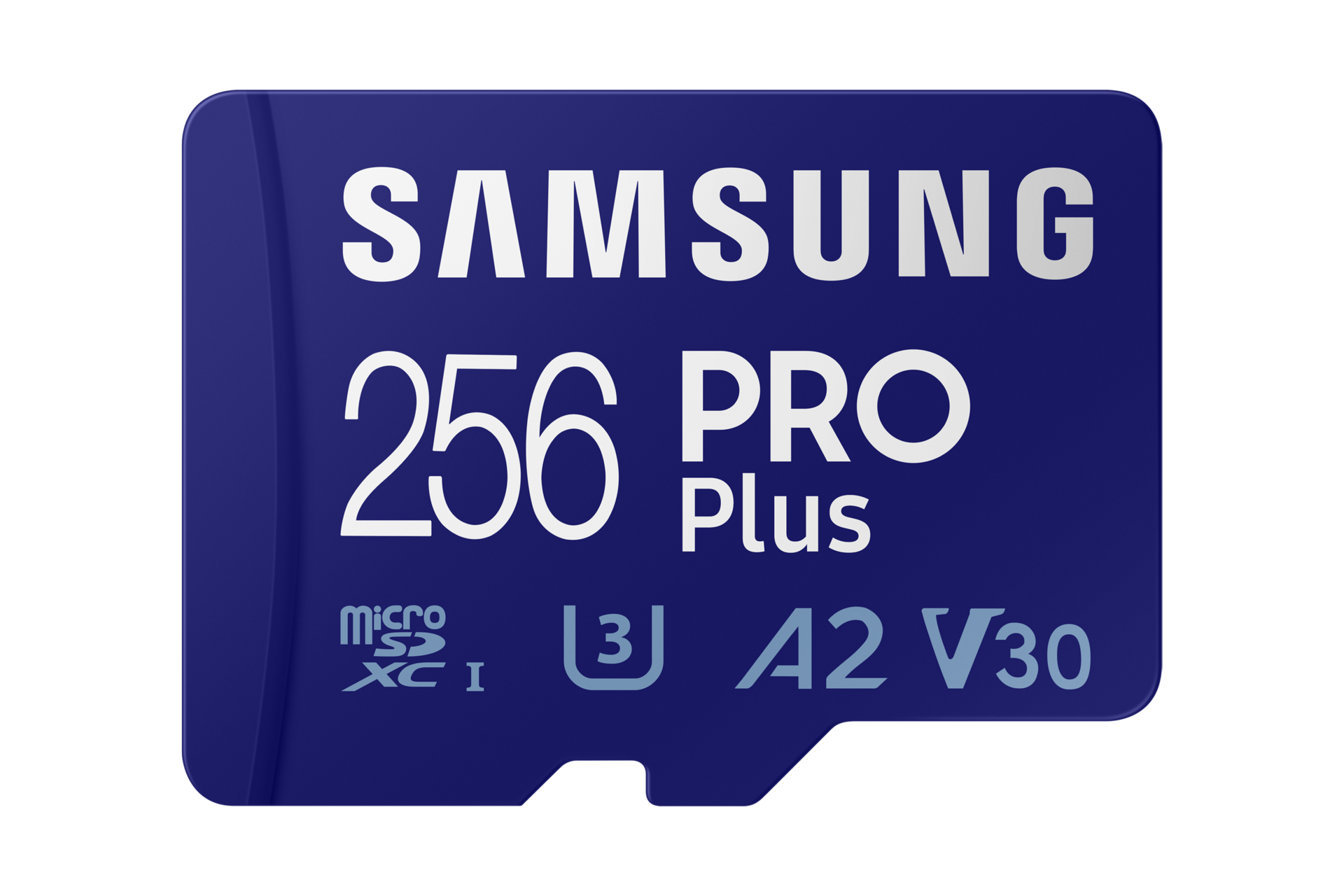 ¹ Ovannämnda läs- och skrivhastigheter är baserade på interna tester under kontrollerade förhållanden. De faktiska hastigheterna kan variera beroende på kortets kapacitet.² Angivna prestanda uppnås genom att använda PRO Plus microSD-kort med Samsung-kortläsare.