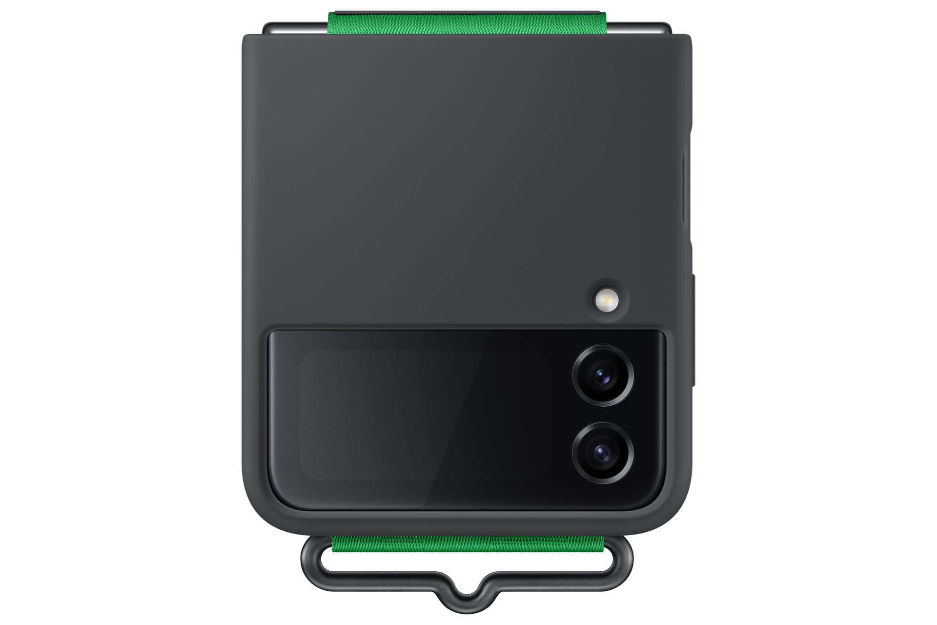 Bär med självförtroende. Silicone Cover med rem, som du själv kan välja, hjälper dig hålla din Galaxy Z Flip4 i ett säkert och bekvämt grepp