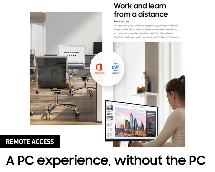 PC on ScreenDistansarbeta smidigt var du än befinner dig. Öka produktiviteten med fjärråtkomstfunktionen PC on Screen. Med programsviten Office 365 kan du läsa och redigera dokument och spara dem i molnet. Och när du är hemma kan du koppla upp dig till datorn på kontoret eller skolan.