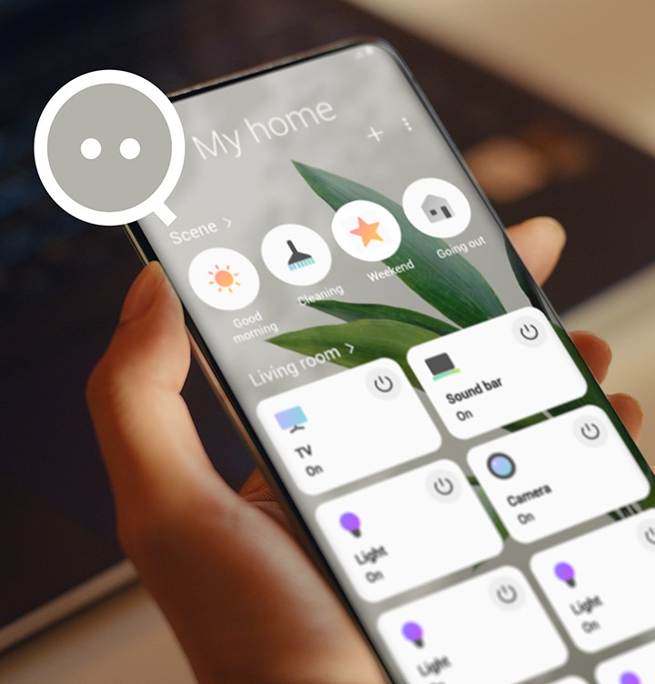 Den smarta belysningen slås på, ljudanläggningen sätts igång och din Samsung smart-TV visar ett program du älskar. Riktigt trevligt när allt sker samordnat.