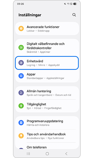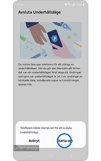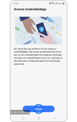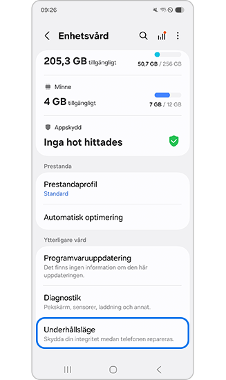 - Du kan också avsluta underhållsläget genom att gå till Inställningar > Enhetsvård > Underhållsläge.