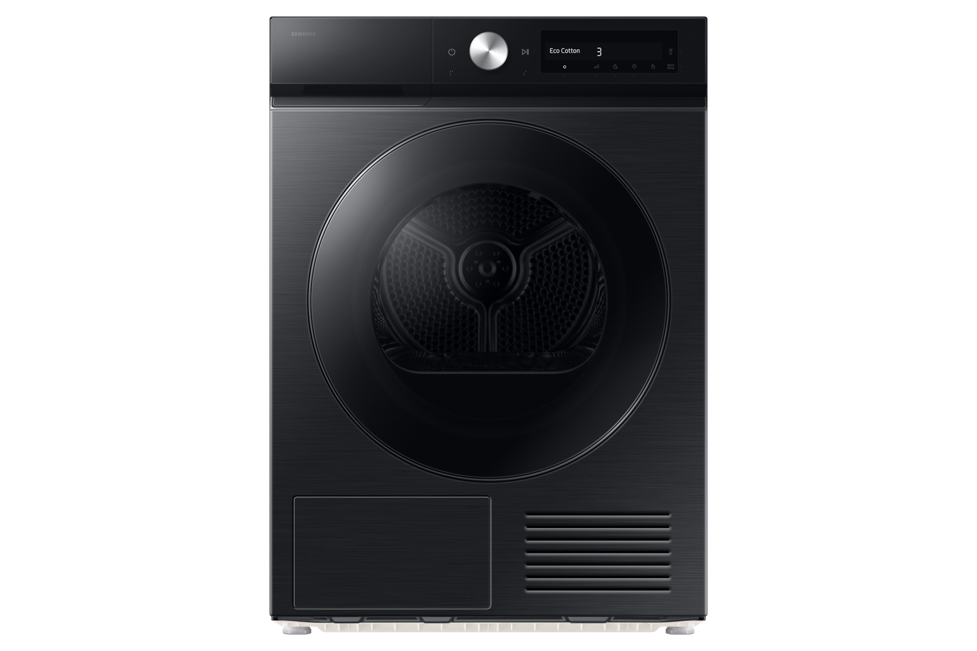*Baserat på en AI-skapad algoritm. Resultaten kan variera beroende på de faktiska användningsförhållandena. **Baserat på interna tester av DV9400B-modellen, där bomulls- och AI Dry+-programmet användes för att torka en blandad tvätt på 2 kg med 43% fukthalt, jämfört med en konventionell Samsung-modell, DV5000T. Resultat: energiförbrukningen minskade med 20%. Resultaten kan variera beroende på de faktiska användningsförhållandena.Snabbt och effektivt