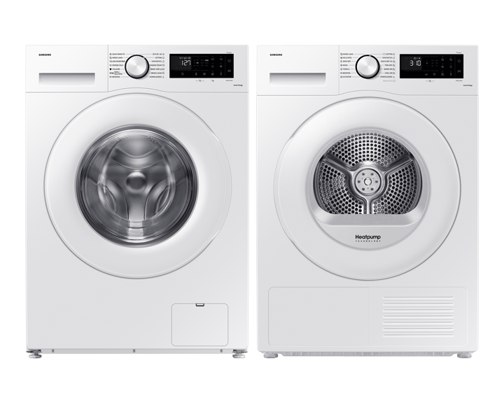* Baserat på internt test i enlighet med IEC 61121:2013 med 8kg tvättmängd, torkprogram Bomull och inställning Skåpstorrt, med torktumlare med värmepump (DV80F5E4HGW) kontra utan värmepump (DV80H4100CW). Individuella resultat kan variera.