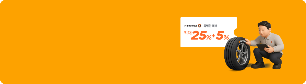 삼성 AI구독클럽 고객 대상, 티스테이션닷컴 내 한국타이어 상품 최대 25% + all my T 5% 할인 제공 (경정비 사용 불가)