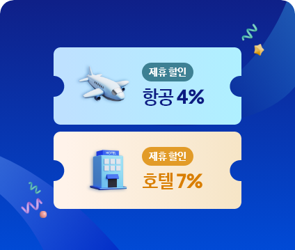 - 항공의 경우 유류 할증료 및 기타 세금을 제외한 항공 운임료에서 할인이 적용됩니다.