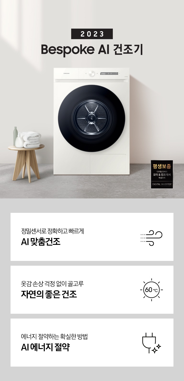 * 평생보증은 디지털 인버터 모터 & 컴프레서 한정이며, 제품 교환이나 구입가 환급에는 적용되지 않음.