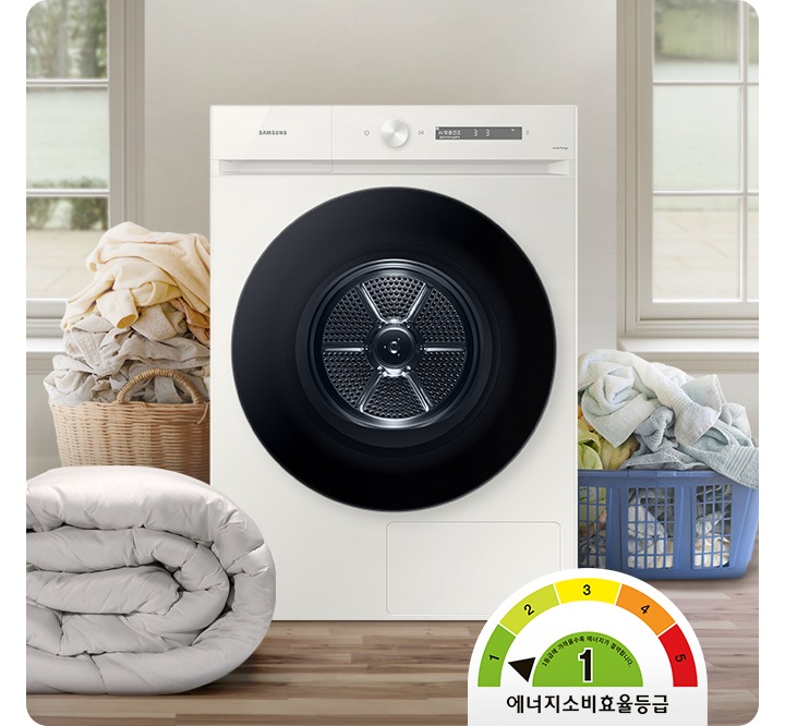 * 실사용 1kg 기준, AI 맞춤건조 코스(건조정도 3), 22년 자사 건조기 DV20B****** 모델 대비 에너지 최대 15%, 시간 최대 10분 절감.