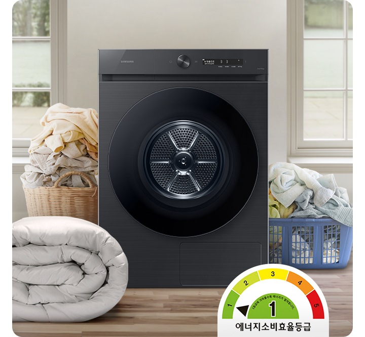 * 실사용 1kg 기준, AI 맞춤건조 코스(건조정도 3), 22년 자사 건조기 DV20B****** 모델 대비 에너지 최대 15%, 시간 최대 10분 절감.