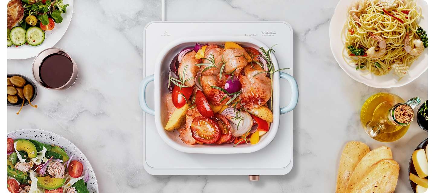 주방에서나 테이블 위에서나 강력한 화력으로 갓 조리한 음식을 식사 내내 따뜻하게 먹을 수 있어요.
