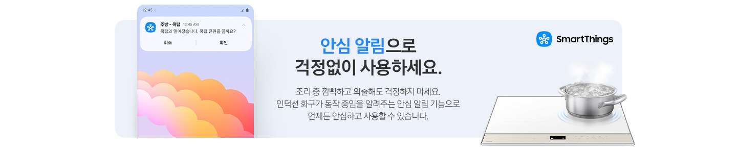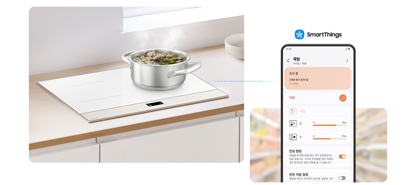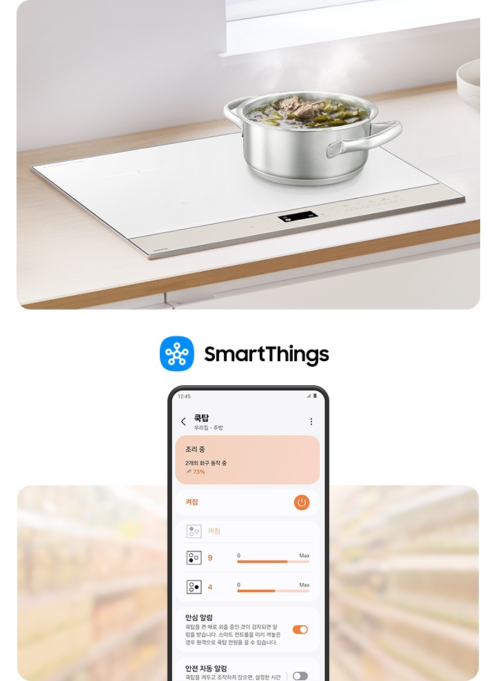 * SmartThings Food 사용을 위해서는 SmartThings 앱 설치 및 연동이 필요하며, SmartThings와의 연결 시 인덕션의 Wi-Fi 기능이 켜져 있어야 합니다.