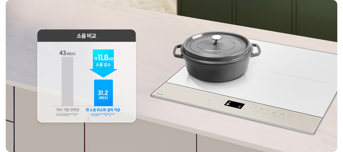 * 자사 무향 무음실 측정 시험치이며, 실 사용 환경에 따라 다를 수 있습니다. 인덕션 동작 소음에 한합니다.