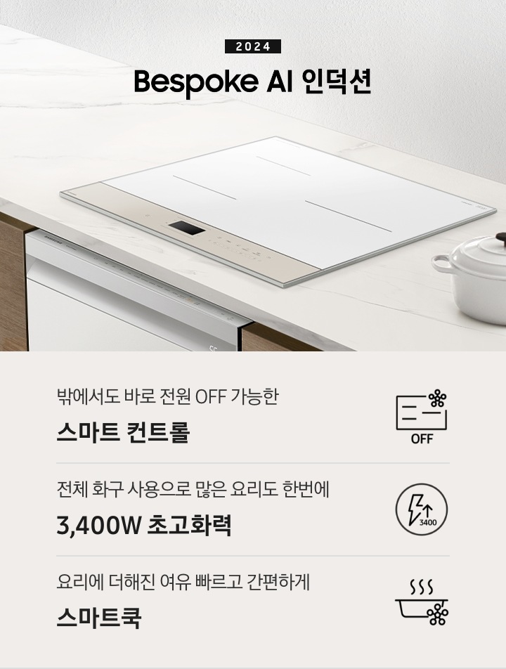 * 삼성전자 비스포크 인덕션 검증 냄비 이외의 용기를 사용할 경우, AI 끓음 감지 및 간편식 국/탕 데우기 기능이 제대로 동작하지 않을 수 있습니다.