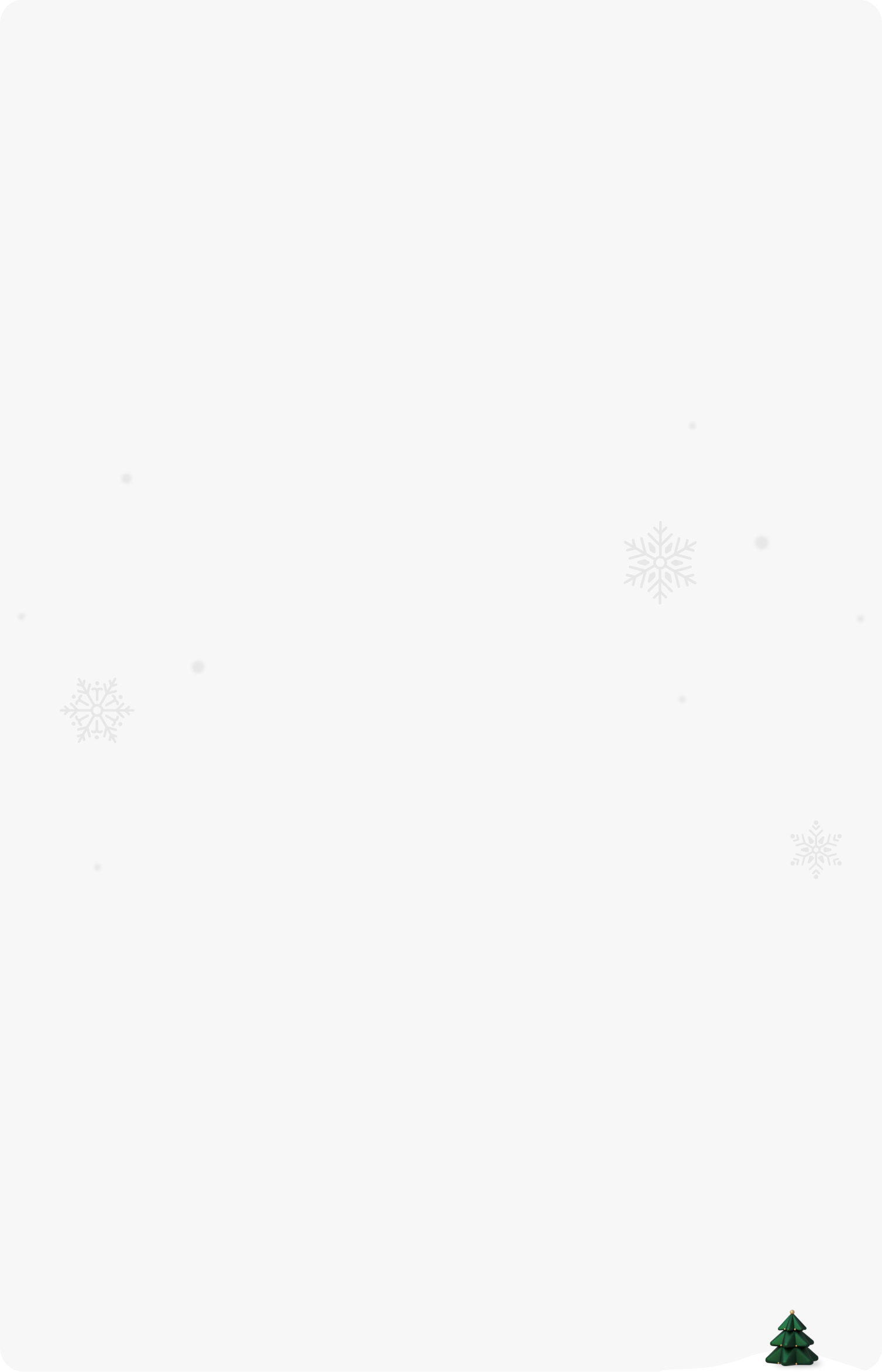 진한 녹색 배경 우측으로 스노우볼 안에 쿠폰이 들어 있으며, 스노우볼 좌측에는 금색, 녹색의 작은 트리 2개와 우측에는 빨간색 썰매가 있고 그 안에 하트와 쿠폰, 선물 아이콘이 들어간 이미지