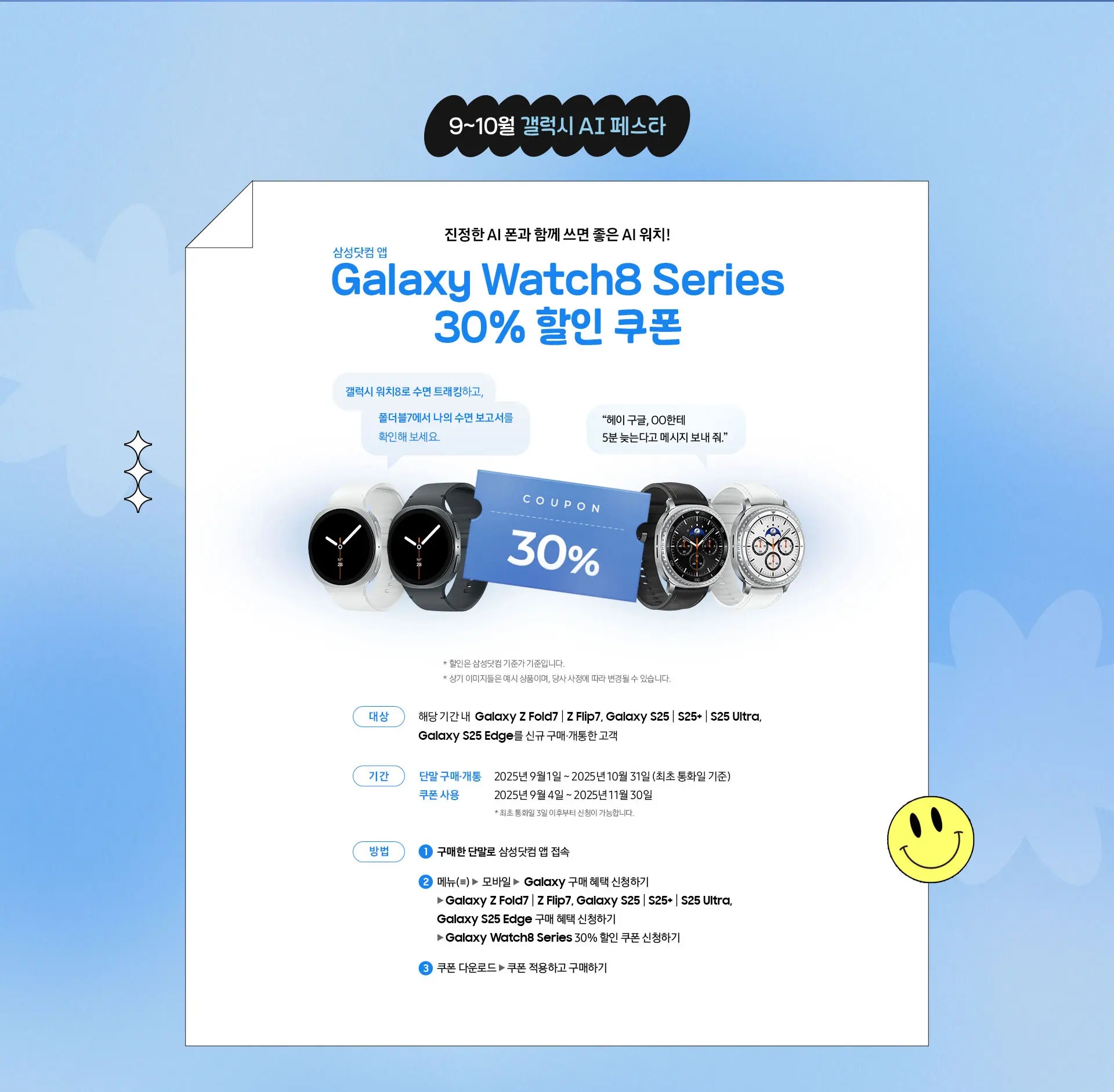 ▶ Galaxy Watch8 Series 30% 할인 쿠폰 신청하기