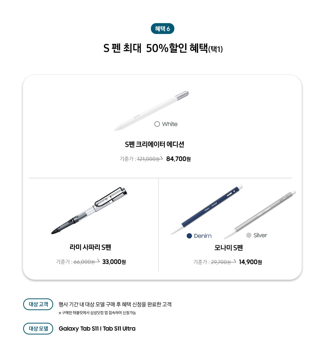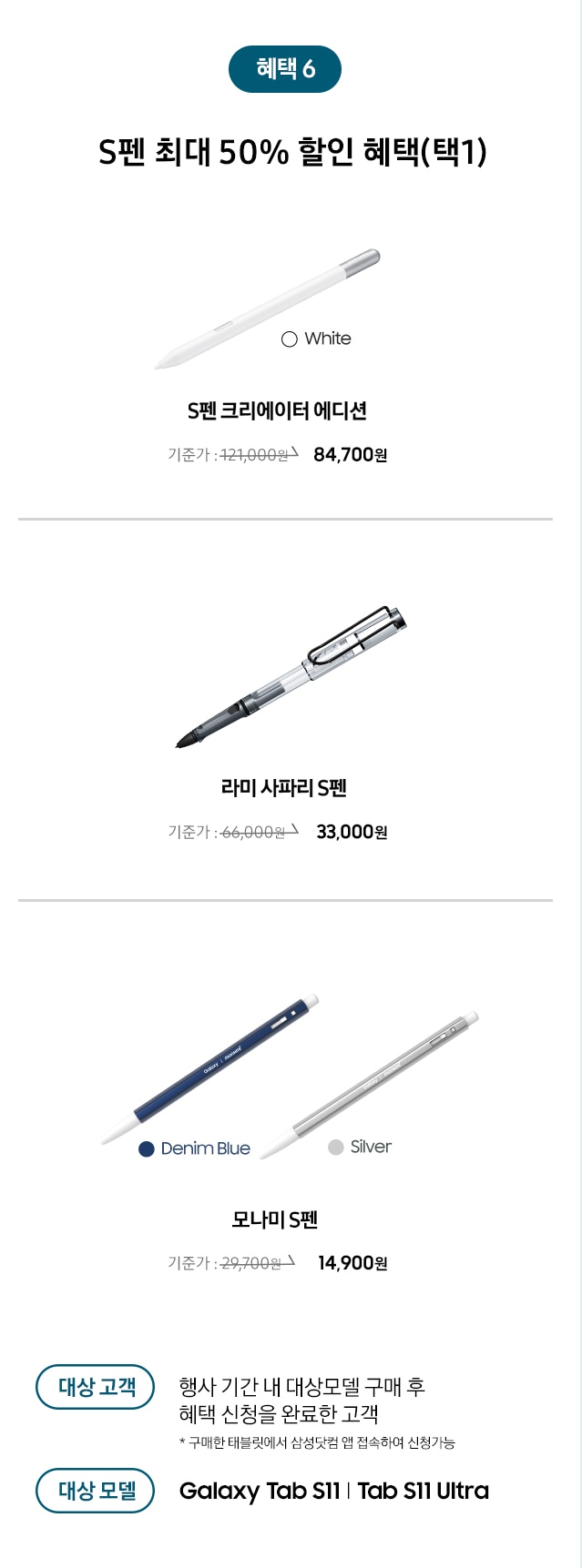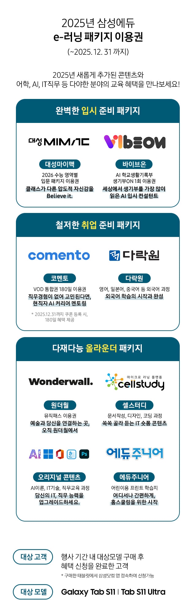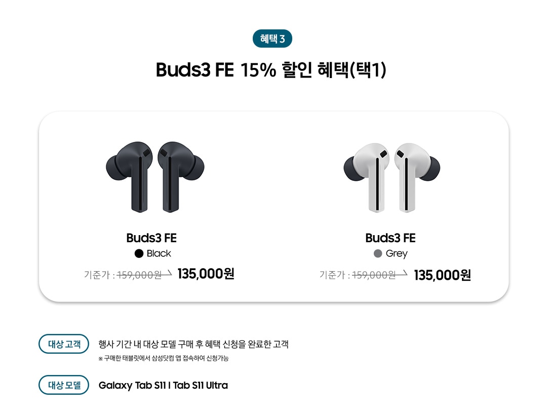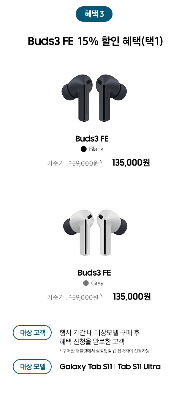 행사기간 : 2025.9.19 ~ 2025.10.16 대상 고객 : 행사 기간 내 대상 모델 구매 고객 *구매한 태블릿으로 삼성닷컴 앱 접속하여 신청가능