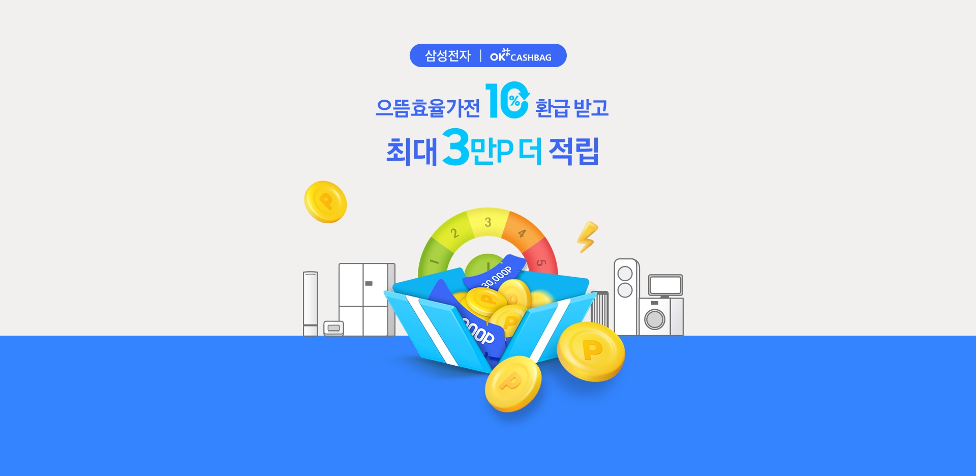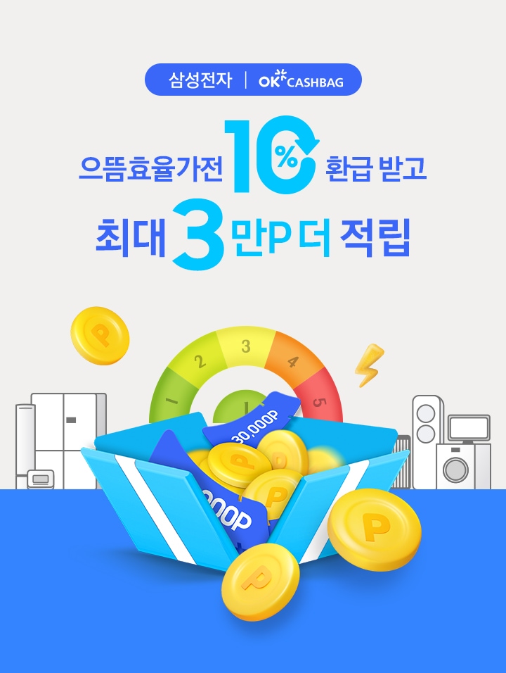 최대 30 + 3만 포인트 혜택 제공OK캐쉬백 쿠폰 등록후 으뜸효율 환급 모델 구매시