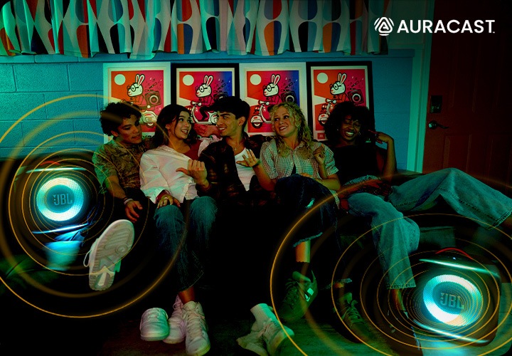 여러 개의 JBL Auracast™ 지원 스피커를 무선으로 연결하여