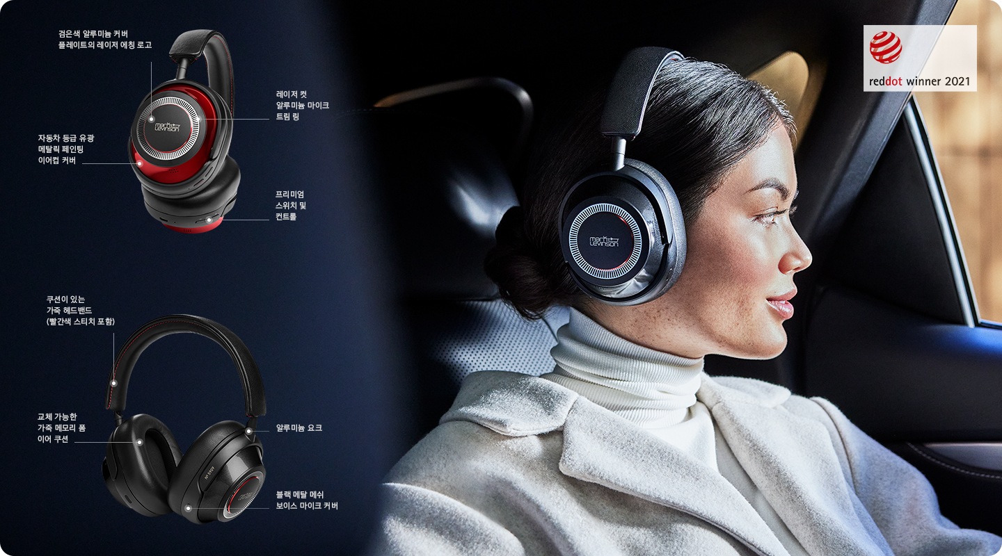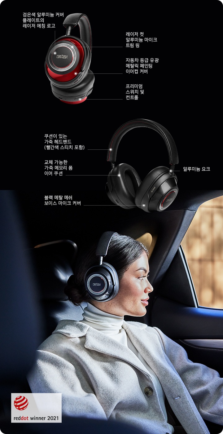 빨간색 스티치가 적용된 프리미엄 가죽 헤드밴드와 교체 가능한 메모리 폼 이어 쿠션은 오랜 시간 착용해도 부담 없는 편안한 착용감을 선사하죠.